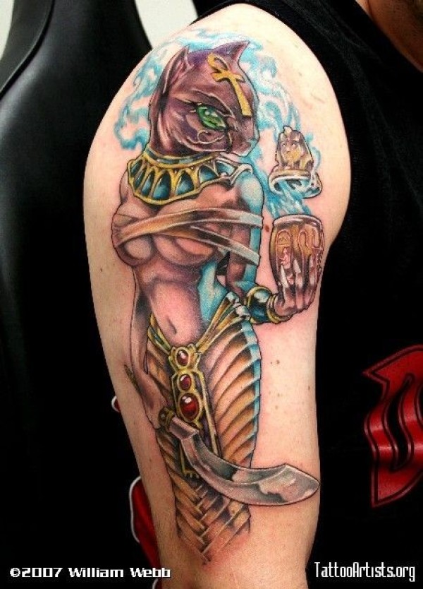大臂华丽的神奇埃及猫形性感女神纹身图案