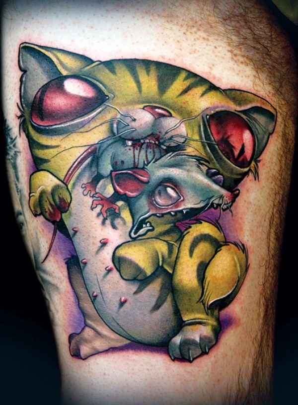 可怕的恶魔猫和血腥老鼠纹身图案