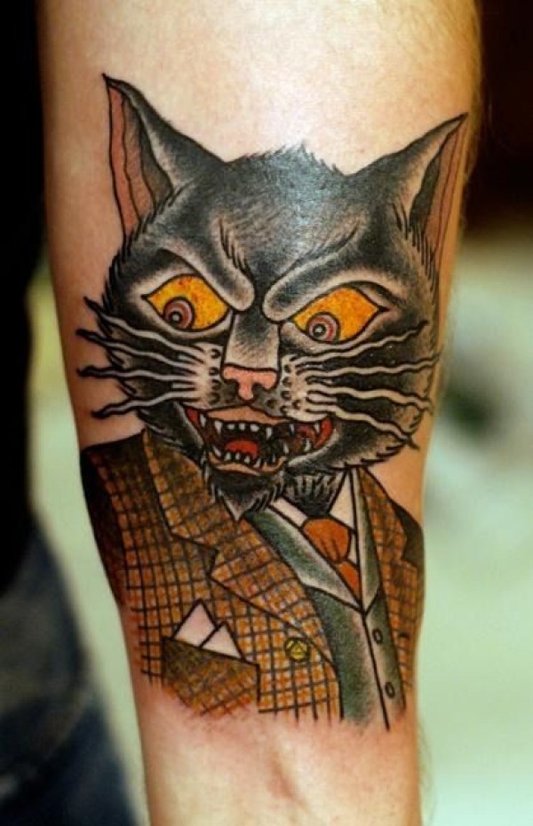 彩色的愤怒猫和西服纹身图案