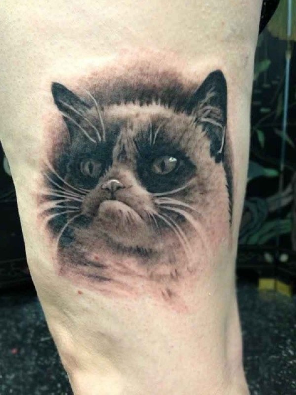 腿上的猫纹身图案