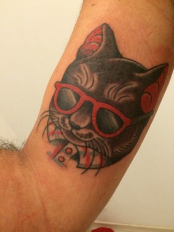 一只戴着眼镜的猫肖像纹身图案