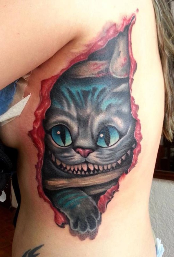 令人毛骨悚然的咧嘴猫撕皮纹身图案