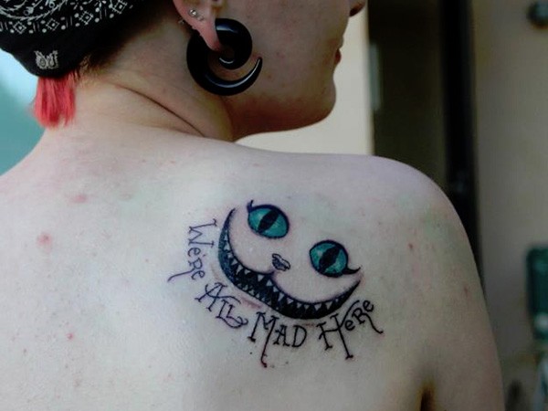 肩部柴郡猫微笑纹身图案