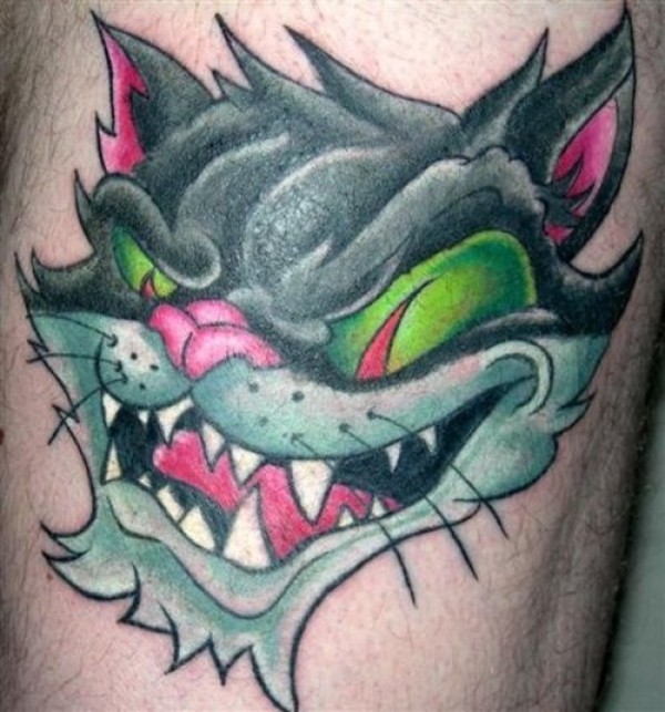 邪恶的猫彩色纹身图案