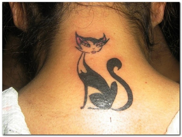 脖子上妖艳的猫纹身图案