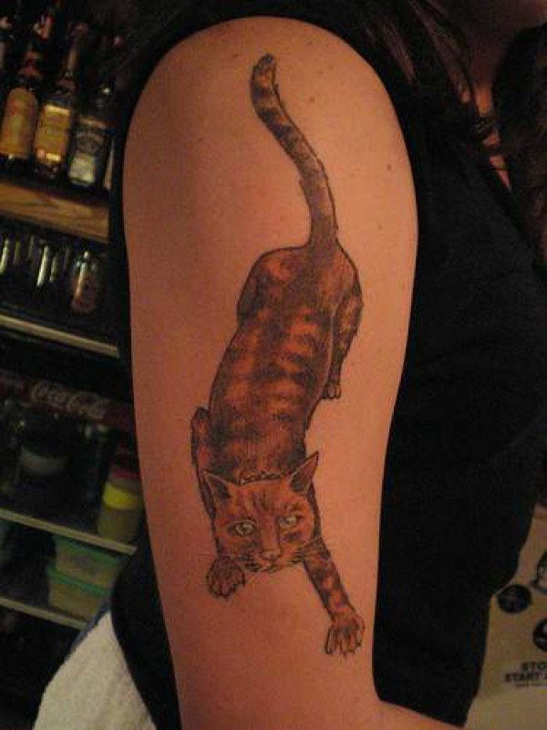 手臂一只野猫纹身图案