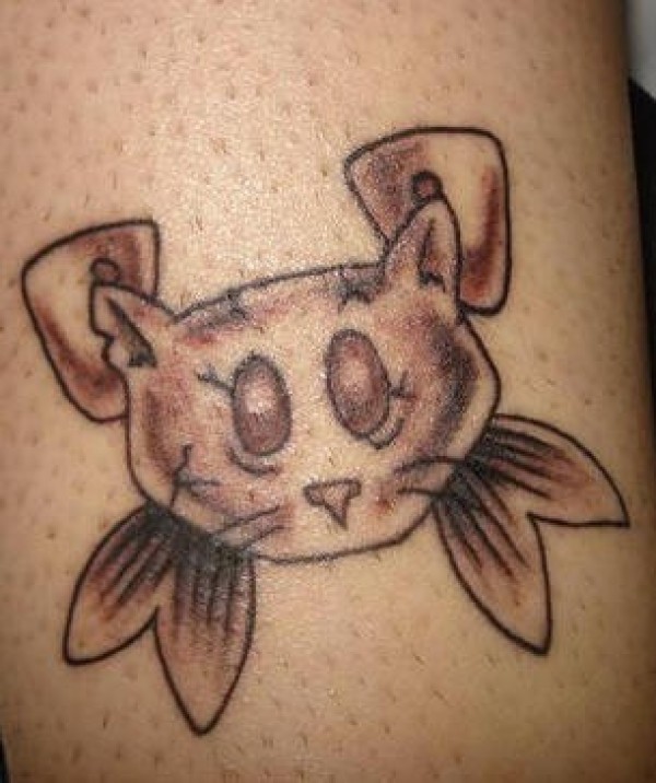 鱼骨和猫头纹身图案
