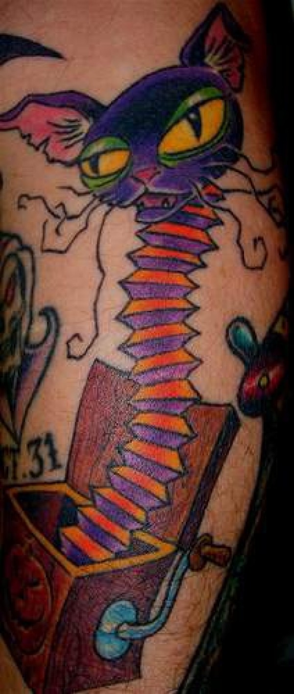 盒子里的玩具猫纹身图案