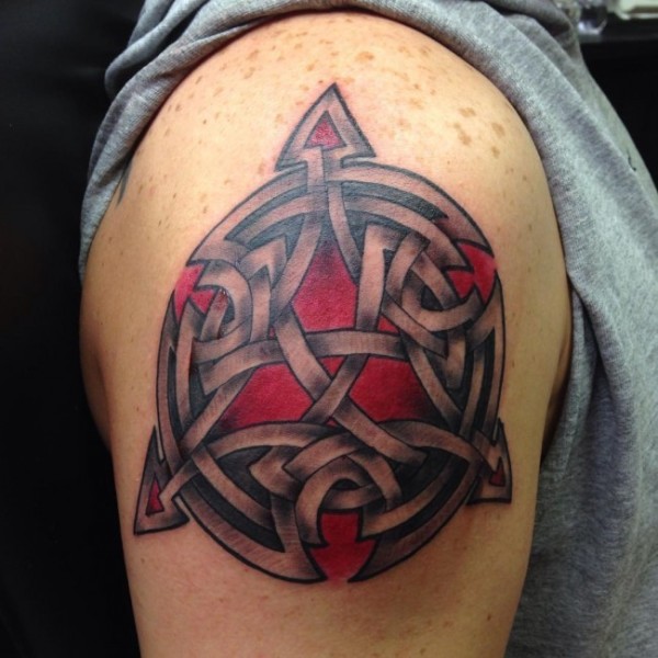 大臂凯尔特结红色纹身图案