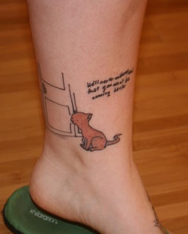 脚踝红猫和字母纹身图案