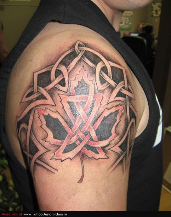 大臂凯尔特结装饰与枫叶纹身图案