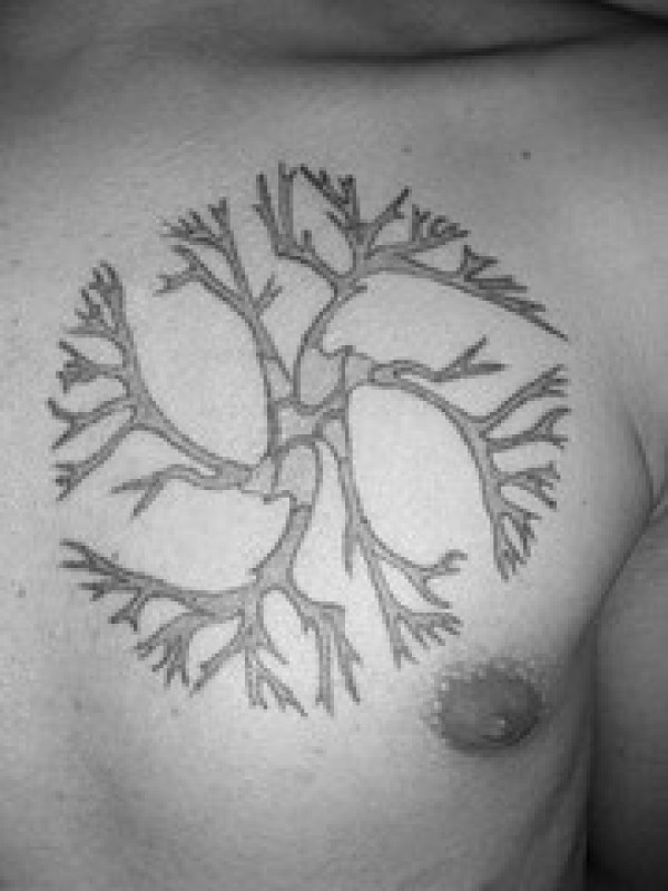 胸部圆形生长树纹身图案