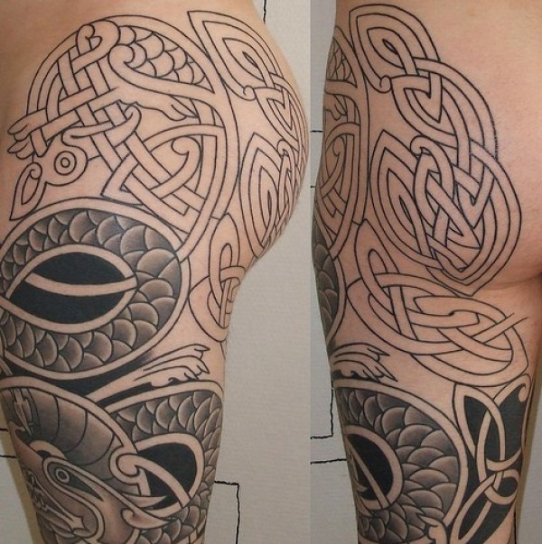 龙纹身手稿_一组老传统黑灰龙手稿纹身图案