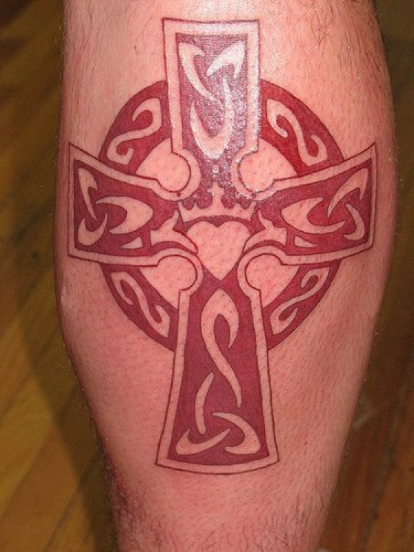 凯尔特结风格心红十字架纹身图案