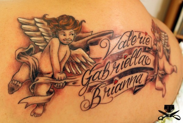 两个小天使和字母纹身图案