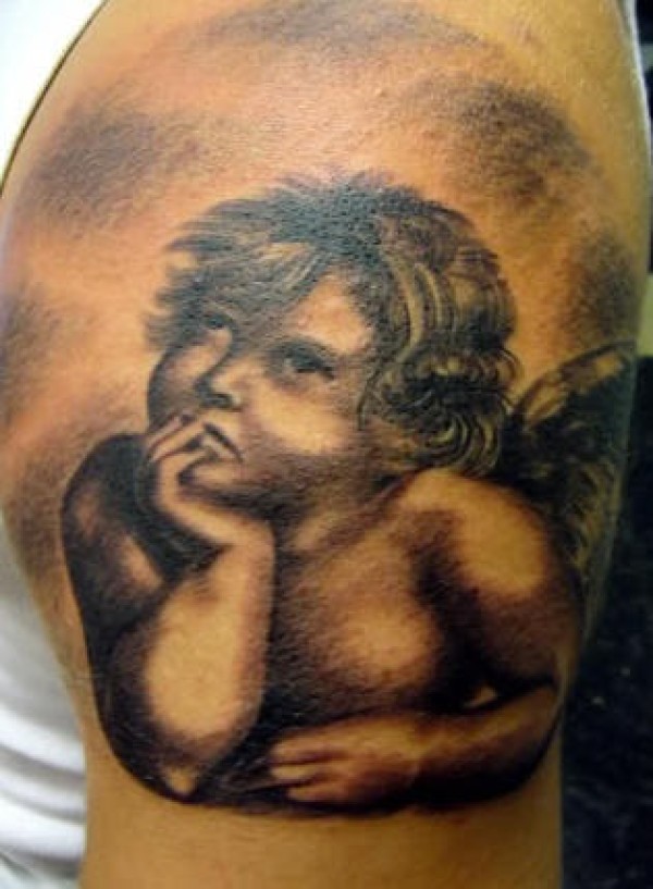 大臂经典的小天使纹身图案