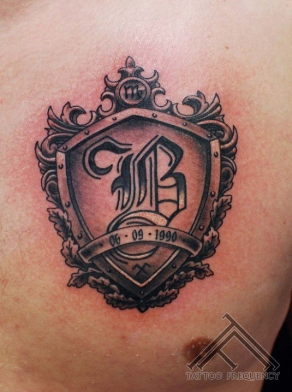 胸部旧标志徽章与字母纹身图案