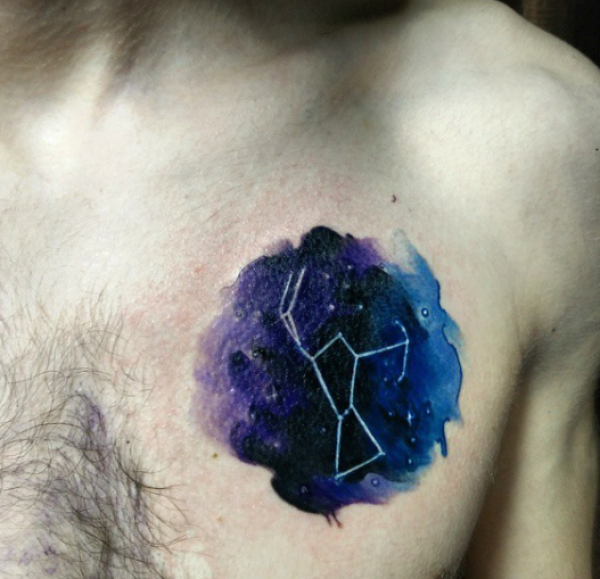 胸部天空中的星座符号纹身图案