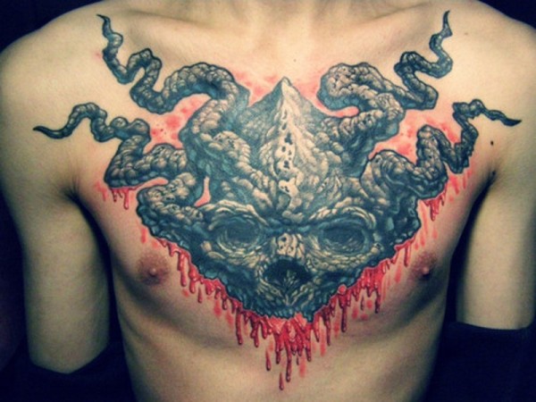 胸部彩绘血腥恶魔面具纹身图案