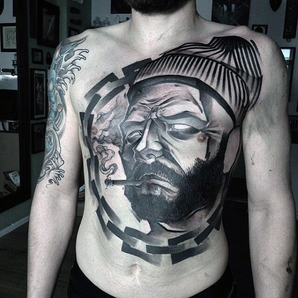 腹部大型吸烟的水手纹身图案