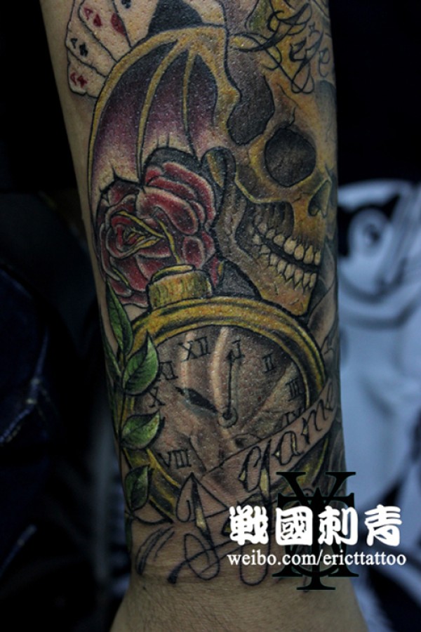 school花臂纹身--一组漂亮的school风格的花臂纹身图案作品