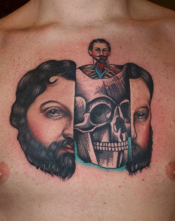 令人毛骨悚然的彩绘分裂头像和骷髅纹身图案