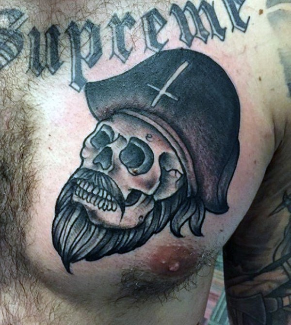 胸部海盗骷髅字母纹身图案