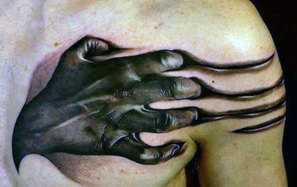 胸部恐怖电影可怕逼真的僵尸手纹身图案