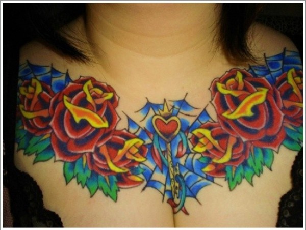 令人震惊的彩色玫瑰心形纹身图案