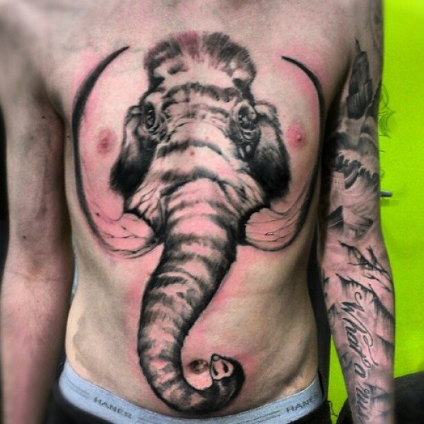 胸部腹部巨大的猛犸象头部纹身图案