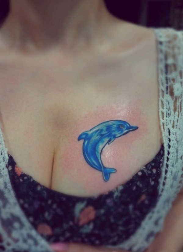胸部简单可爱的海豚纹身图案