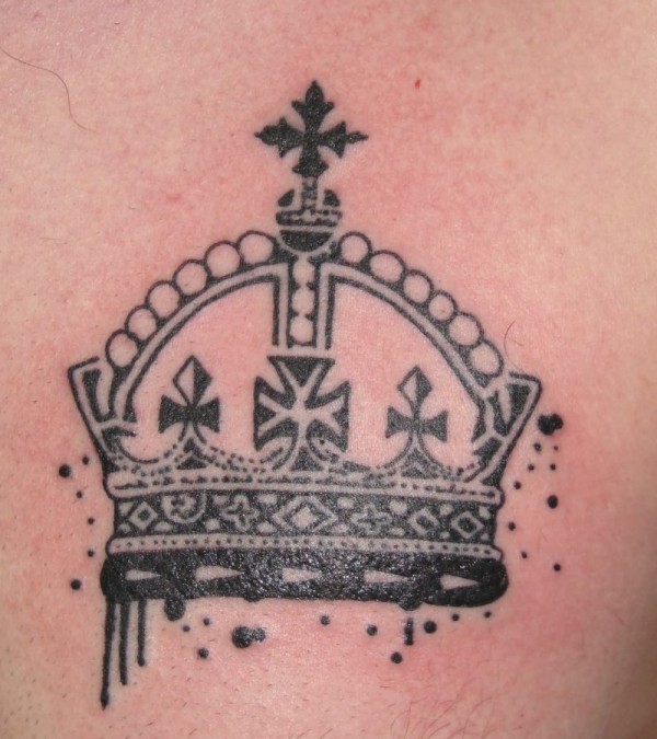 男子胸部黑色皇冠纹身图案
