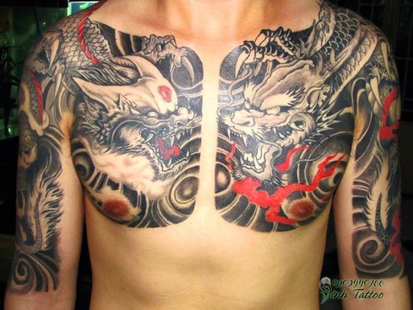 中国风半甲邪恶的龙纹身图案