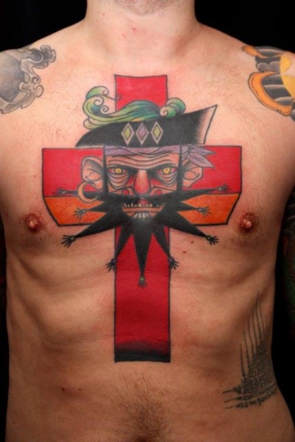 海盗十字架胸部纹身图案
