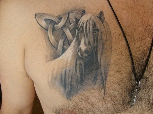 胸部长鬃马和符号纹身图案