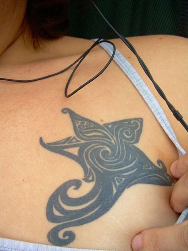 星星图腾胸部纹身图案