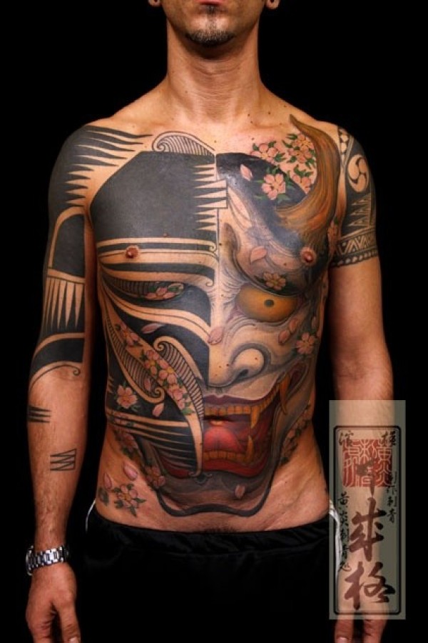 男士腹部恶魔般若超个性纹身图案