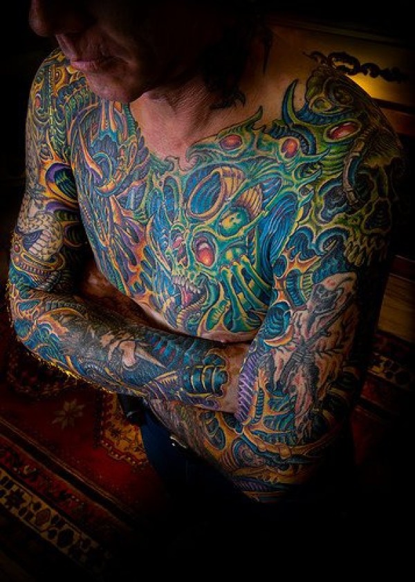 全身夸张的彩绘纹身图案