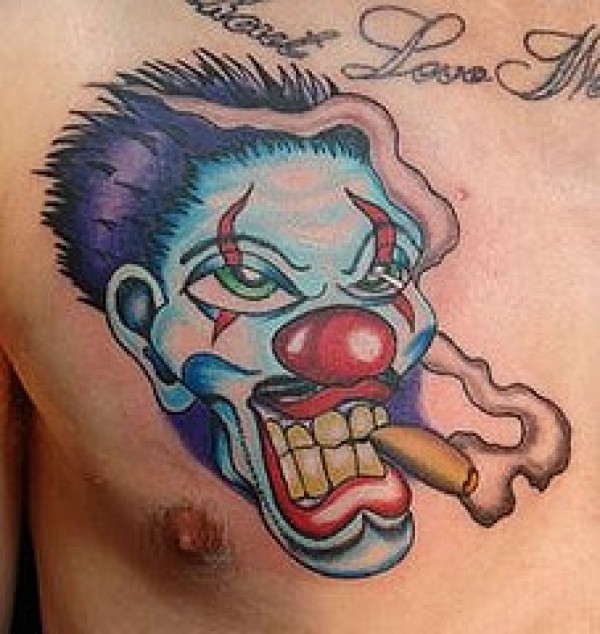 胸部吸烟小丑纹身图案