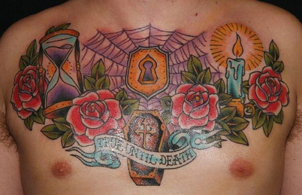 胸部棺材蜡烛花朵沙漏彩绘纹身图案
