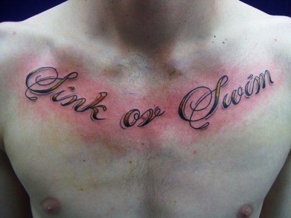 下沉或游泳英文胸部纹身图案