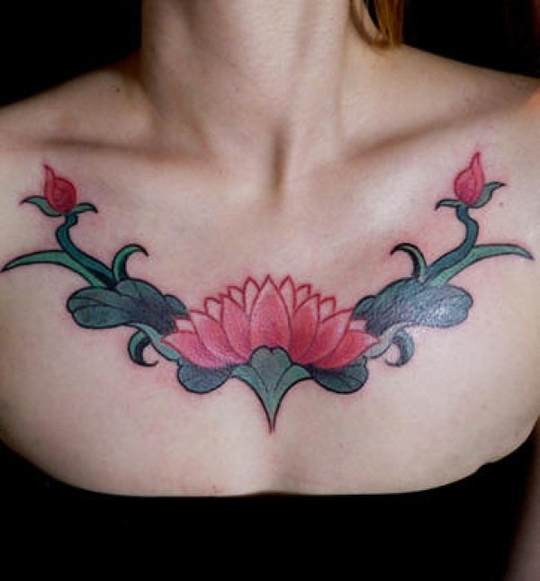 莲花藤蔓胸部纹身图案
