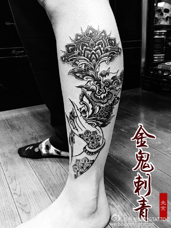佛手 娜迦 莲花Tattoo by花宇【金鬼刺青】