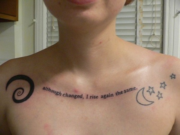 女孩子胸部英文座右铭与星星和月亮纹身图案