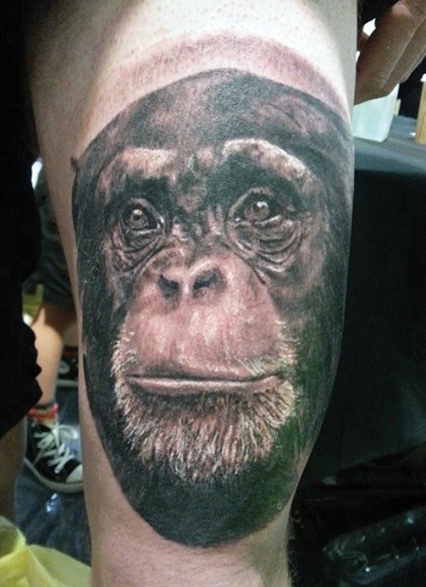 逼真的黑猩猩头部大腿纹身图案