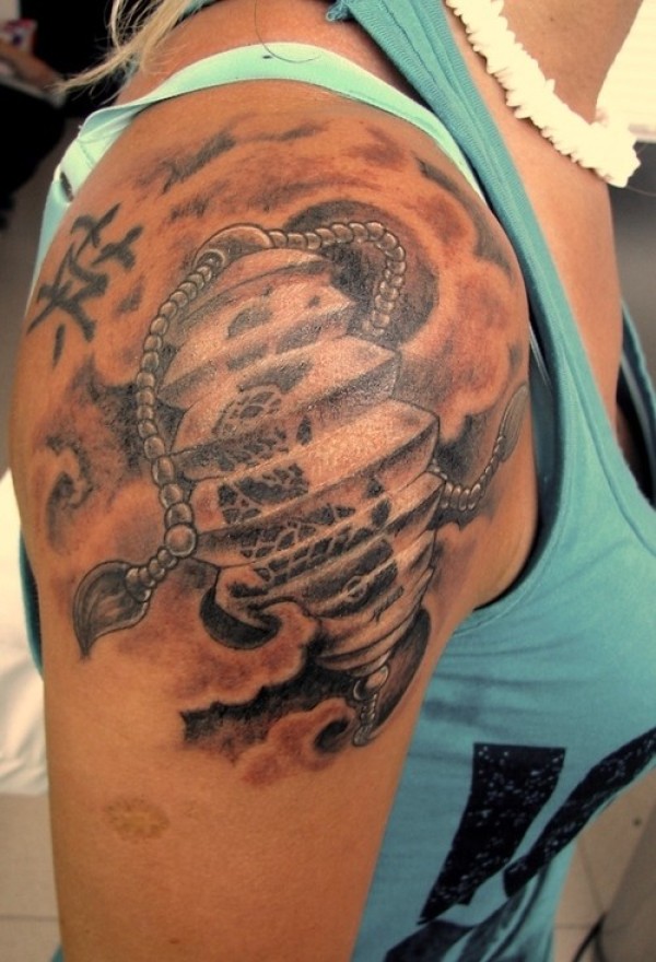 肩部大型中国风灯笼纹身图案