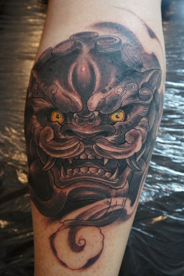 中国风唐狮头部纹身图案