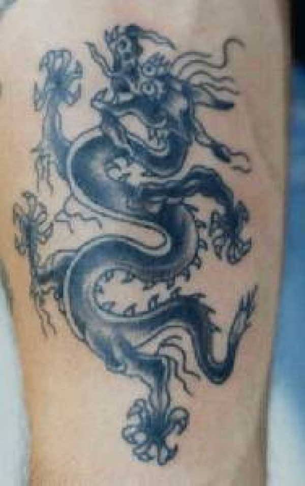 龙纹身手稿_一组老传统黑灰龙手稿纹身图案