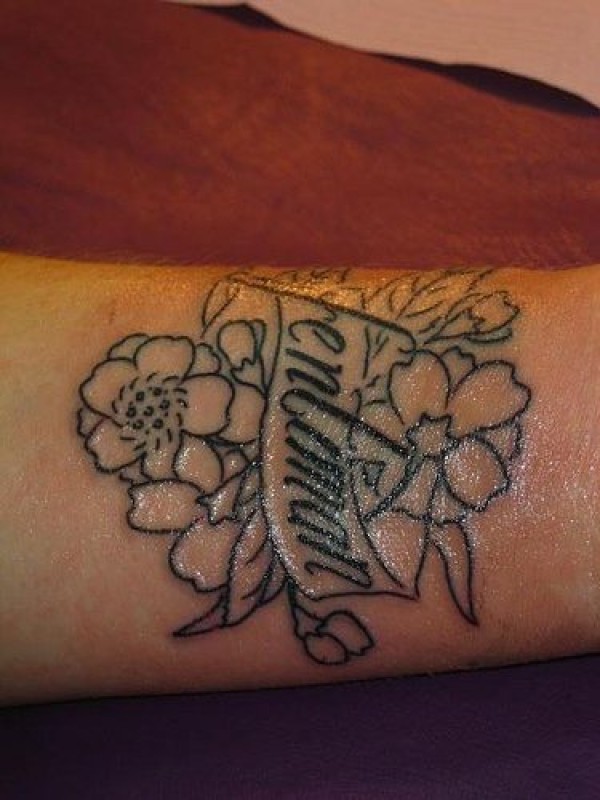 经典花卉和字母手腕纹身图案