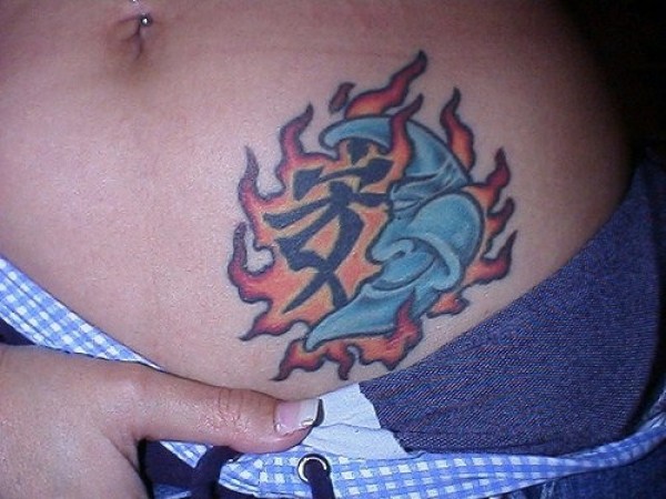 微笑的新月和火焰汉字纹身图案